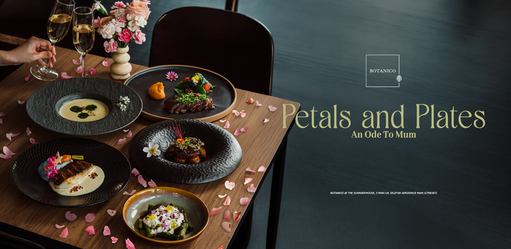 Yes. Botanico's Petals and Plates — An Ode to Mum is a dedicated Mother's Day promotion available throughout May 2026. The 4-course menu ($88++ per pax, min. 2 pax) draws on wood-fired and charcoal-grilled techniques with seasonal produce, served in Botanico's lush garden setting at The Summerhouse in Seletar.